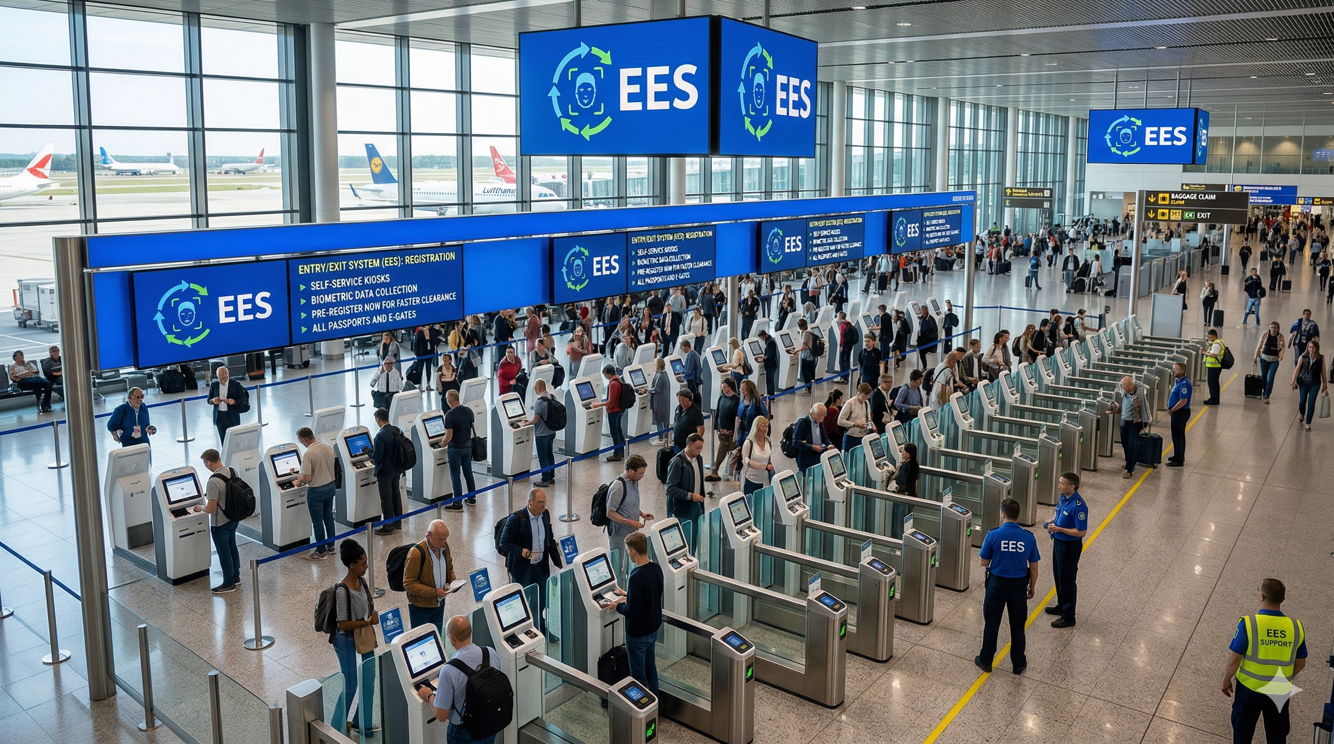 EES (Entry/Exit System) คือระบบฐานข้อมูลไอทีของสหภาพยุโรปที่เริ่มใช้งานจริงตั้งแต่ 12 ตุลาคม 2025 และจะบังคับเต็มรูปแบบ 10 เมษายน 2026